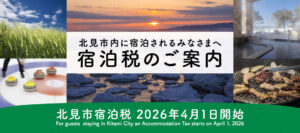 この度、北海道および北見市において新たに「宿泊税」が導入されました。これに伴い、当館をご利用いただくすべてのお客様には、宿泊税をご負担いただくこととなりました。